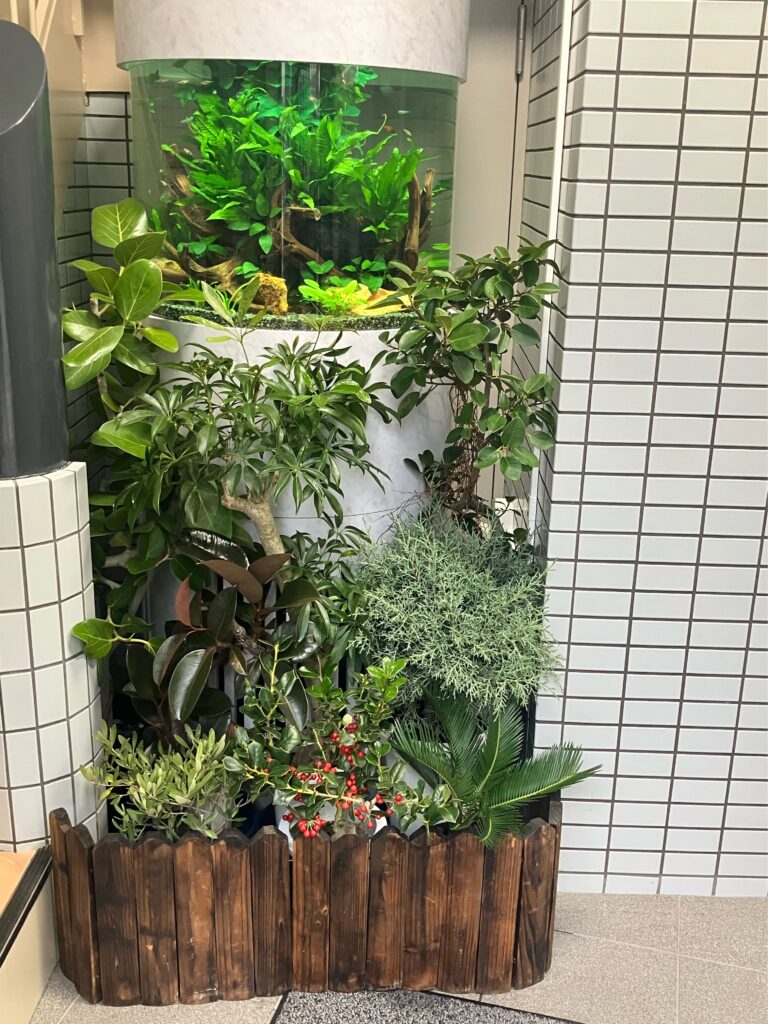 以前植物を設置させていたただいていたスペースに水槽を設置されるということで一旦撤去に。