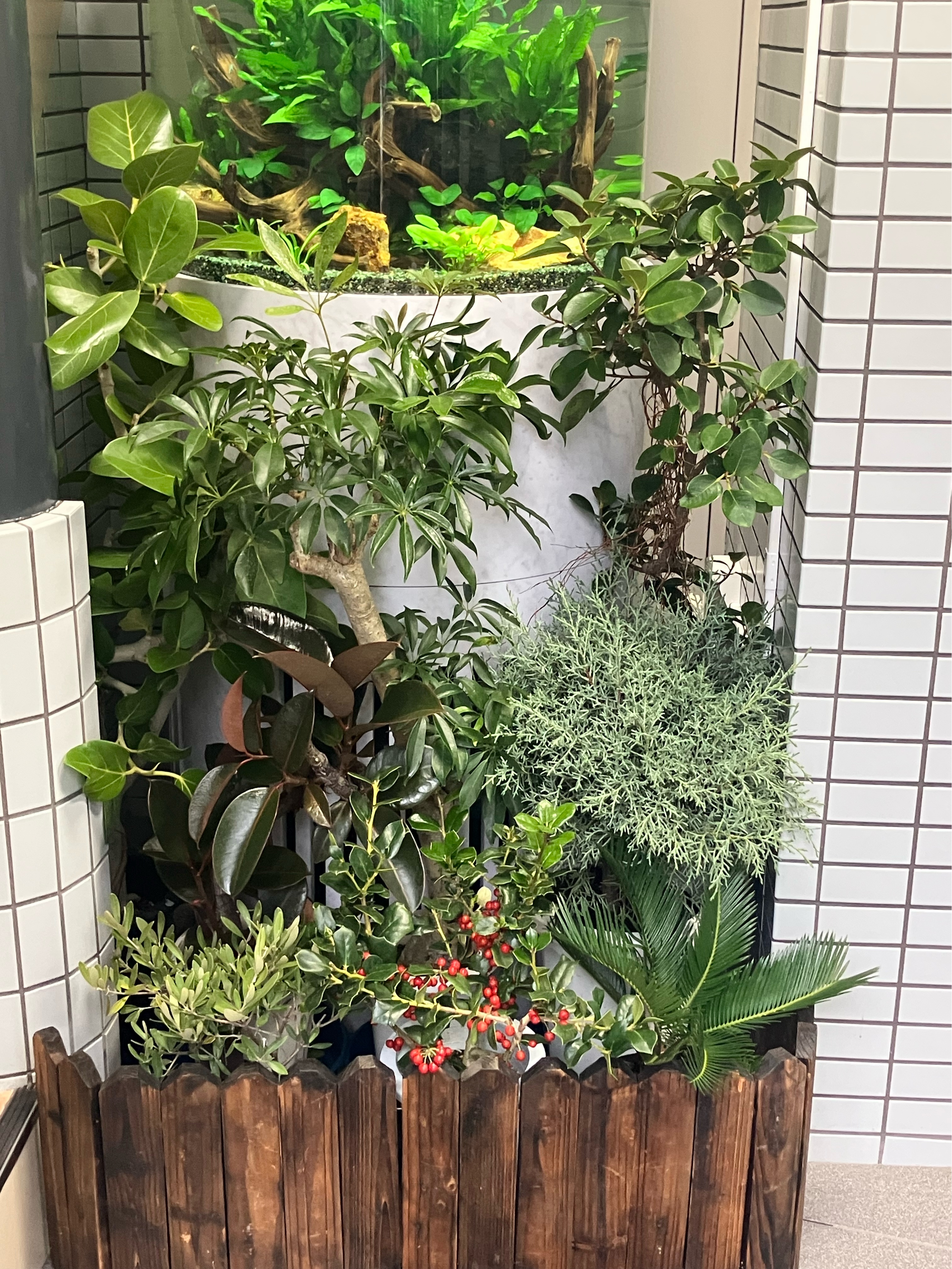 ちなみに、水槽のメンテナンスのために植物を簡単に移動させられるように、木のフェンスを